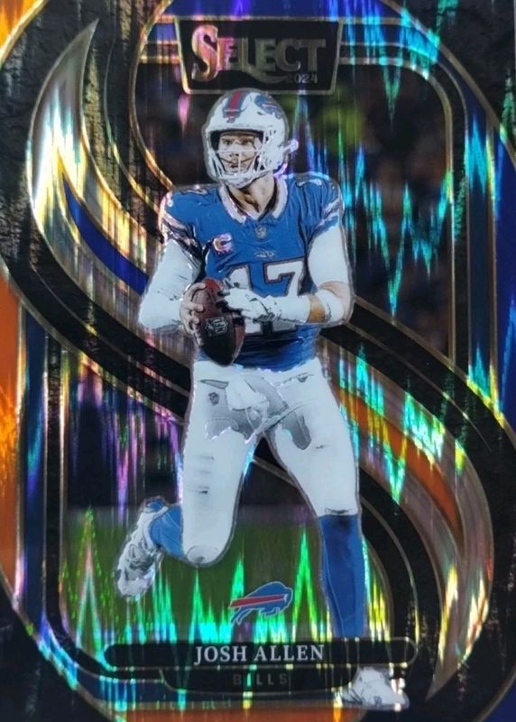 Auctions Ending Soon for Josh Allen 2024 Select #122 Premier Level Blue & Orange Shock /35 RAW
