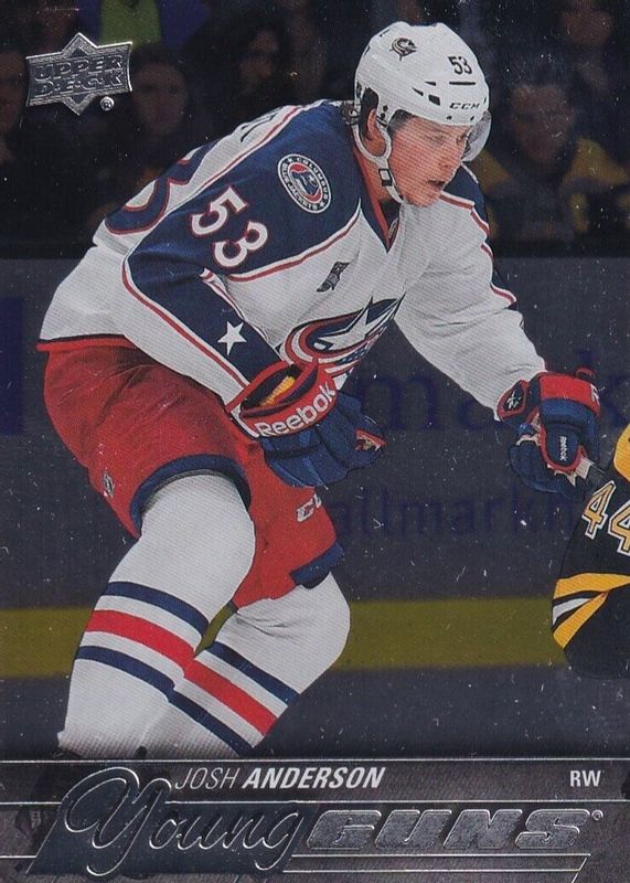 This card is 1 of 7 Josh Anderson's card variations in the 2015 Upper Deck set being tracked by Sports Card Investor, including Young Guns Base, Young Guns - Jumbo, Young Guns - Acetate, Young Guns - UD Exclusives /100, and Young Guns - UD Midnight /25.