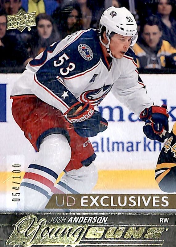 The Josh Anderson 2015 Upper Deck #217 Young Guns - UD Exclusives /100 Rookie card in Raw condition has not changed in price in the last 30 days and was last sold for $88.21 .