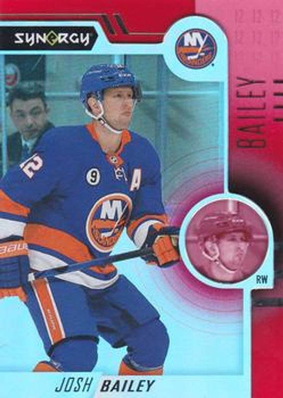The Josh Bailey 2022 Upper Deck Synergy #3 Red card is 1 of 9 Josh Bailey's card variations in the 2022 Upper Deck Synergy set being tracked by Sports Card Investor, including Base /23, Red Codes, Purple /49, Gold /25, and Rink Ink.