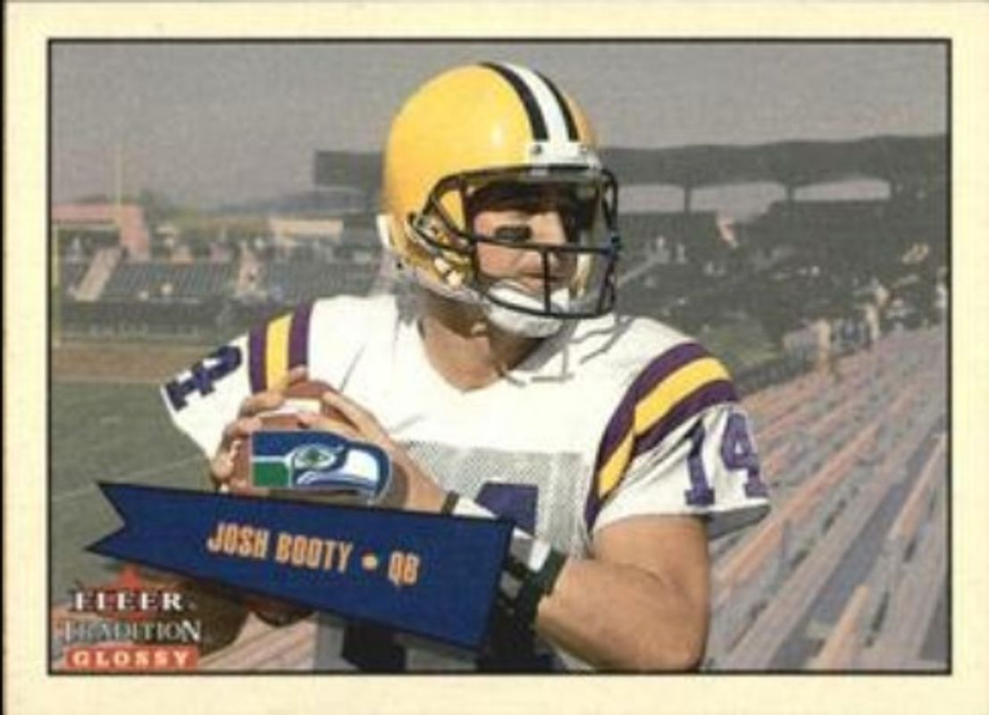 The Josh Booty 2001 Fleer Tradition Glossy #437 Rookie Minis /350 card is 1 of 3 Josh Booty's card variations in the 2001 Fleer Tradition Glossy set being tracked by Sports Card Investor, including Base /2001, and Rookie Stickers /699.
