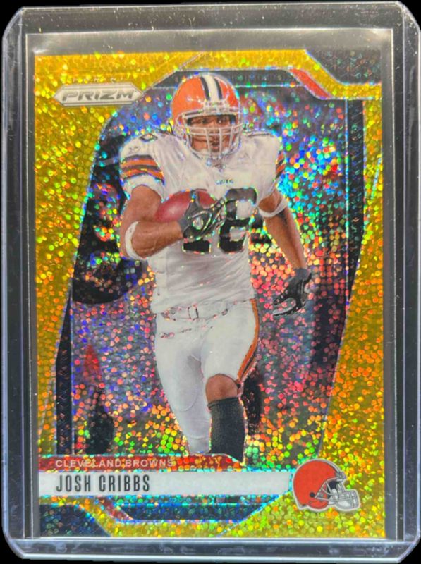 The Josh Cribbs 2024 Prizm #72 Gold Sparkle /24 card is 1 of 83 Josh Cribbs' card variations in the 2024 Prizm set being tracked by Sports Card Investor, including Base, Choice Blue Yellow Green, Choice Silver, Disco, and Green.