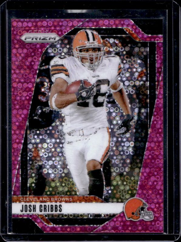 The Josh Cribbs 2024 Prizm #72 No Huddle Pink /25 card is 1 of 83 Josh Cribbs' card variations in the 2024 Prizm set being tracked by Sports Card Investor, including Base, Choice Blue Yellow Green, Choice Silver, Disco, and Green.
