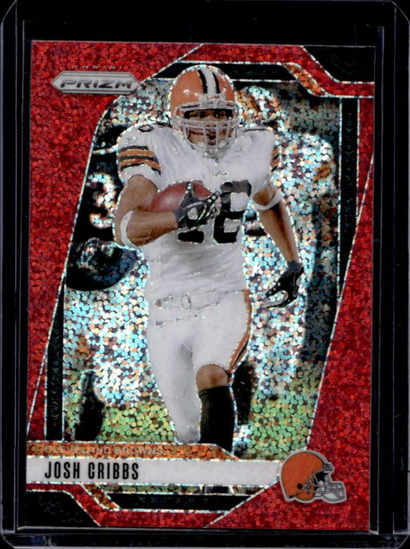 The Josh Cribbs 2024 Prizm #72 Red Sparkle /(SSP) card is 1 of 83 Josh Cribbs' card variations in the 2024 Prizm set being tracked by Sports Card Investor, including Base, Choice Blue Yellow Green, Choice Silver, Disco, and Green.