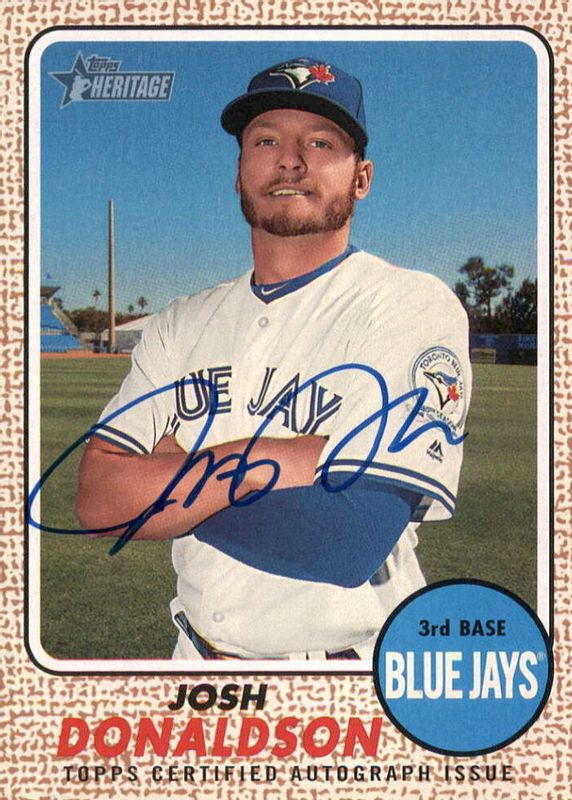 This card is 1 of 2 Josh Donaldson's card variations in the 2017 Topps Heritage High Number set being tracked by Sports Card Investor, including Real One Autographs - Red Ink /68.