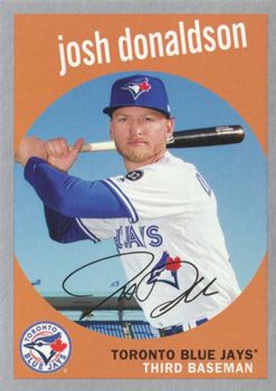 The Josh Donaldson 2018 Topps Archives #24 Silver /99 card is 1 of 9 Josh Donaldson's card variations in the 2018 Topps Archives set being tracked by Sports Card Investor, including Base, 1959 & 1977 Signatures Omissions, 1959 Venezuelan, Purple /175, and Blue /25.
