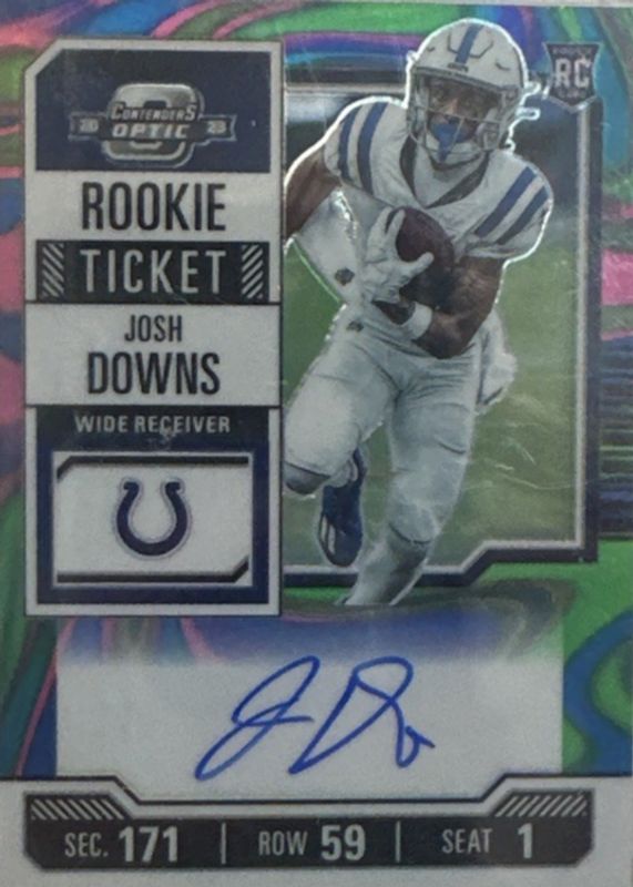 Josh Downs 2023 Contenders Optic #121 Rookie Ticket Auto - Neon Marble /4 RAW Price Guide