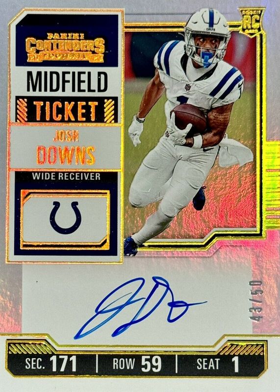 JOSH DOWNS 2023 PANINI CONTENDERS MIDFIELD TICKET ROOKIE ON CARD AUTO /50 COLTS