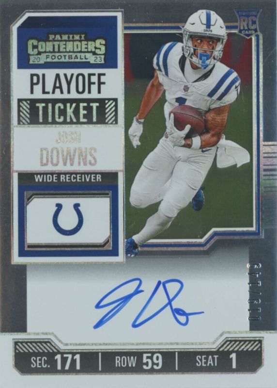 2023 Contenders Josh Downs RC Playoff Ticket Rookie Auto #/149 Colts