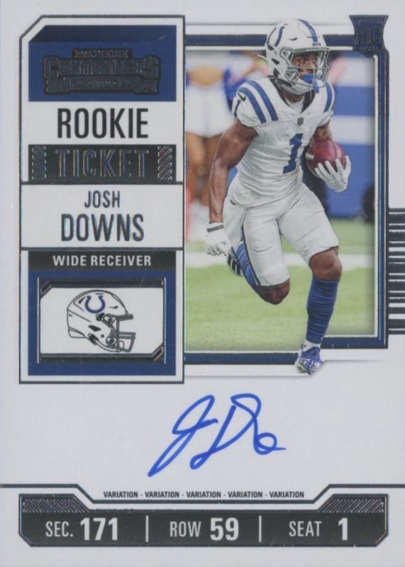 2023 Panini Contenders JOSH DOWNS RC Rookie Ticket Auto Variation Colts WW1