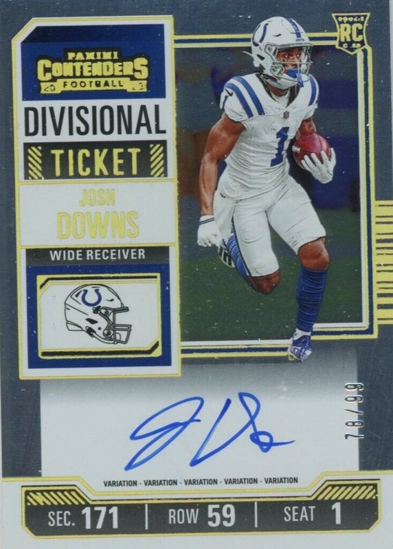 2023 24 Contenders Josh Downs Divisional Ticket Auto RC #/99 Variation Colts