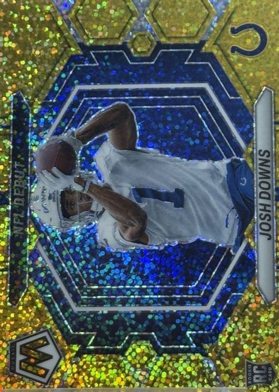 JOSH DOWNS 2023 MOSAIC NFL DEBUT ROOKIE GOLD SPARKLE PRIZM RC /24 SSP