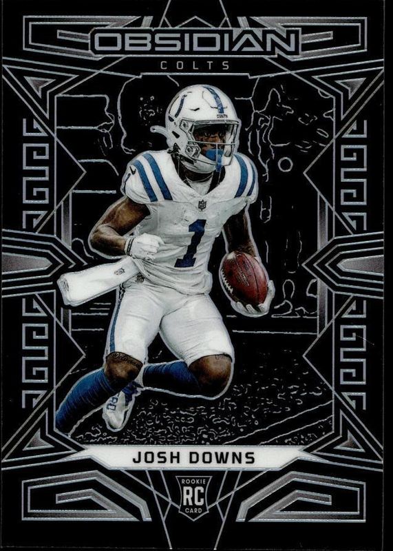 The Josh Downs 2023 Obsidian #145 Base Rookie card in Raw condition has not changed in price in the last 30 days and was last sold for $3.00 .