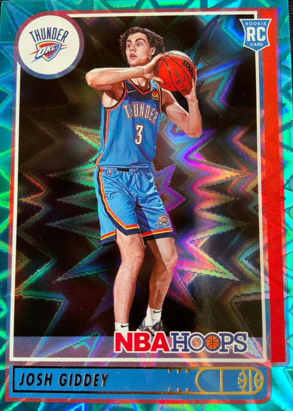 The Josh Giddey 2021 Hoops #202 Teal Explosion Rookie card in Raw condition has moved down -$4.01 (-80.2%) in the last 30 days and was last sold for $0.99 .