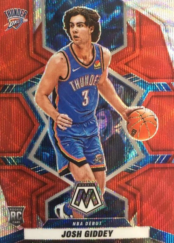 The Josh Giddey 2021 Mosaic #265 NBA Debut - Red Wave Rookie card in Raw condition has moved down -$2.84 (-47.4%) in the last 30 days and was last sold for $3.15 .