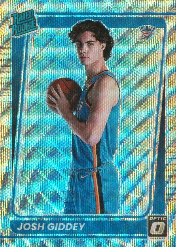 This card is 1 of 82 Josh Giddey's card variations in the 2021 Optic set being tracked by Sports Card Investor, including Base, Blue Pulsar, Blue Velocity, Checkerboard, and Choice.