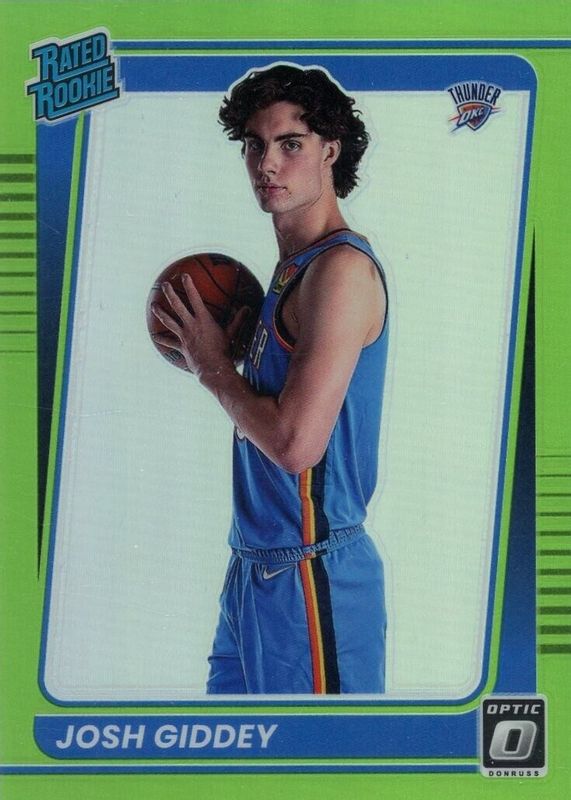 The Josh Giddey 2021 Optic #152 Lime Green /149 Rookie card in Raw condition has not changed in price in the last 30 days and was last sold for $12.38 .