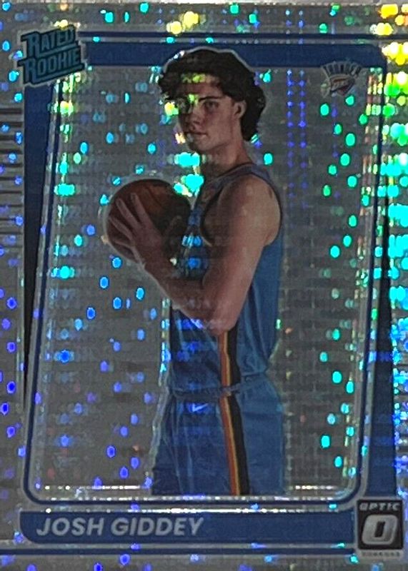 This card is 1 of 82 Josh Giddey's card variations in the 2021 Optic set being tracked by Sports Card Investor, including Base, Blue Pulsar, Blue Velocity, Checkerboard, and Choice.