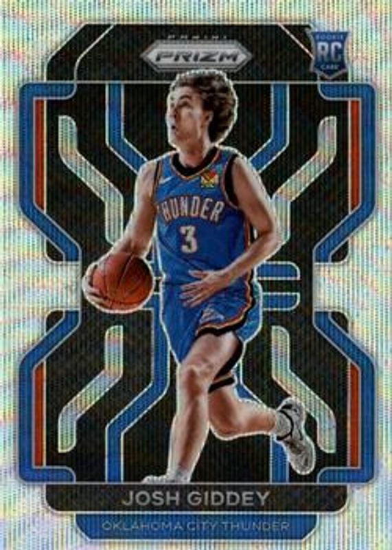 The Josh Giddey 2021 Prizm #301 Silver Wave Rookie card is 1 of 102 Josh Giddey's card variations in the 2021 Prizm set being tracked by Sports Card Investor, including #301b Base, #301 Base, #301 Photo Variation, #301 Blue NBA 75th Anniversary, and #301 Blue Wave.