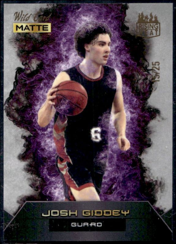 The Josh Giddey 2022 Wild Card Matte #RH-14 Rising Heat Silver Purple /25 card is 1 of 455 Josh Giddey's card variations in the 2022 Wild Card Matte set being tracked by Sports Card Investor, including Base, 5 Stripe Black, 5 Stripe White, Black, and Blue Chase.