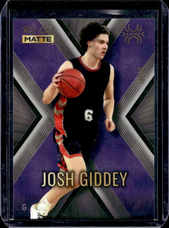 The Josh Giddey 2022 Wild Card Matte #MXP-24 X Plode Silver Purple X /15 card is 1 of 455 Josh Giddey's card variations in the 2022 Wild Card Matte set being tracked by Sports Card Investor, including Base, 5 Stripe Black, 5 Stripe White, Black, and Blue Chase.