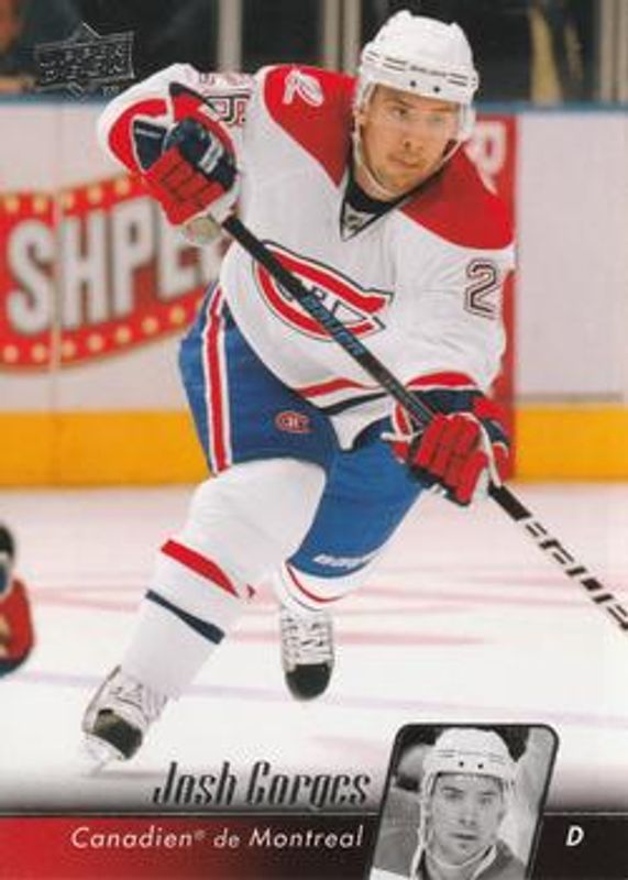The Josh Gorges 2010 Upper Deck French #98 Base card is 1 of 6 Josh Gorges' card variations in the 2010 Upper Deck French set being tracked by Sports Card Investor, including Red /25, Printing Plates Black /1, Printing Plates Cyan /1, Printing Plates Magenta /1, and Printing Plates Yellow /1.