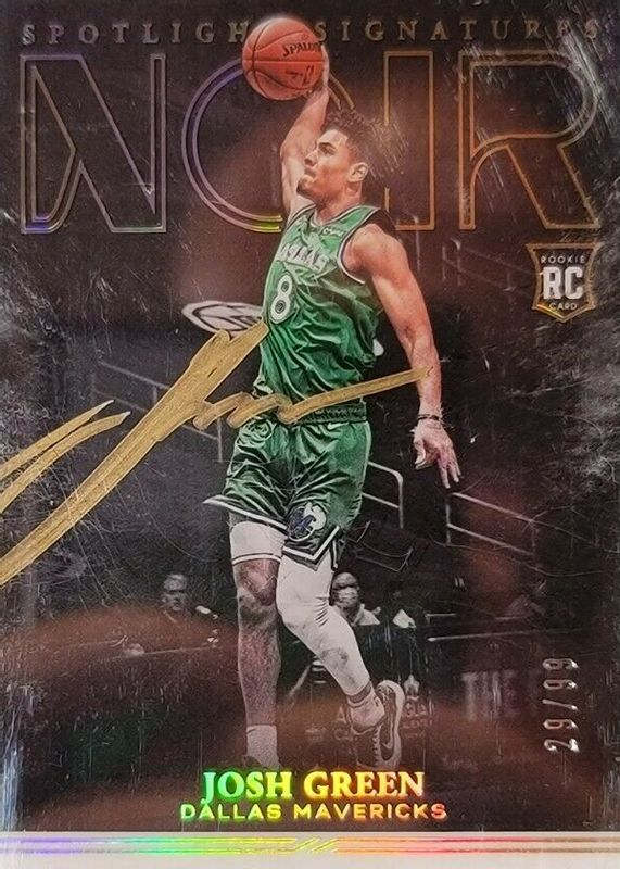 The Josh Green 2020 Noir Spotlight Signatures /99 Rookie card in Raw condition has not changed in price in the last 30 days and was last sold for $130.50 .
