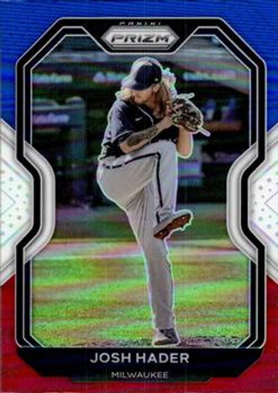 The Josh Hader 2021 Prizm #162 Red White Blue card is 1 of 43 Josh Hader's card variations in the 2021 Prizm set being tracked by Sports Card Investor, including Base, Blue, Blue Velocity, Carolina Blue, and Cosmic Haze.