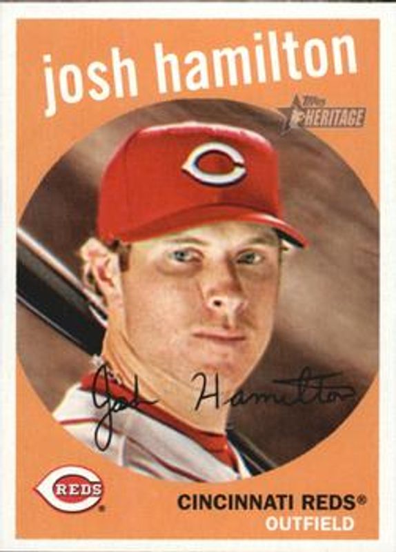 The Josh Hamilton 2008 Topps Heritage #78b Base card is 1 of 6 Josh Hamilton's card variations in the 2008 Topps Heritage set being tracked by Sports Card Investor, including Base, Chrome /1959, Chrome Refractor /559, Chrome Refractor Black /59, and Flashbacks.
