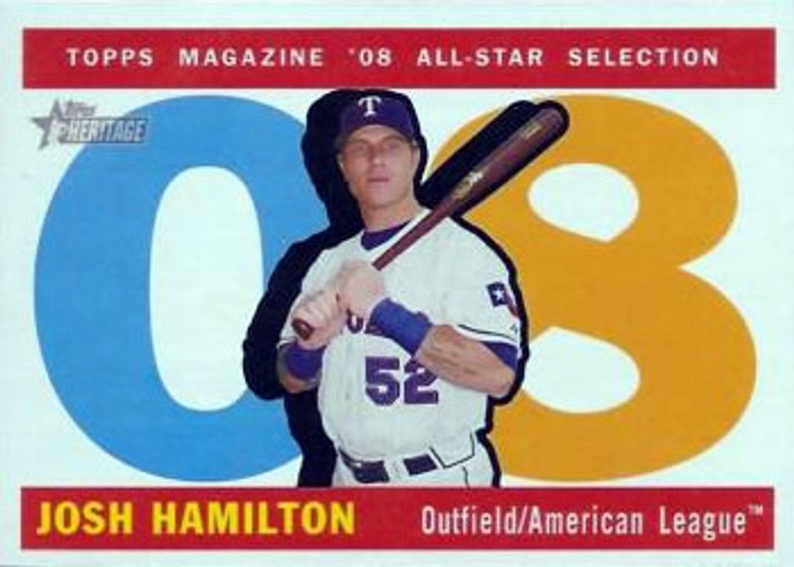 The Josh Hamilton 2009 Topps Heritage #489 Base card is 1 of 3 Josh Hamilton's card variations in the 2009 Topps Heritage set being tracked by Sports Card Investor, including Mayo (Walmart), and New Age Performers.