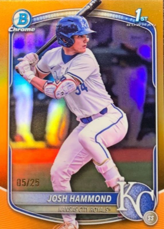 Best Prices Available For Sale of Josh Hammond 2025 Bowman Draft #BDC-185 Chrome - Orange Refractor /25 (1st)