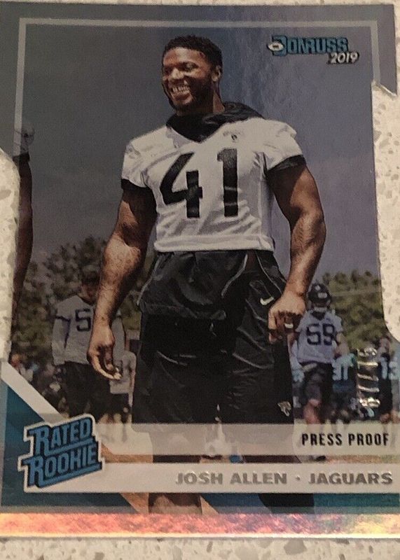 This card is 1 of 25 Josh Hines-Allen's card variations in the 2019 Donruss set being tracked by Sports Card Investor, including Base, Aqueous Test, Canvas, Jersey Number (/41), and Press Proof Blue.