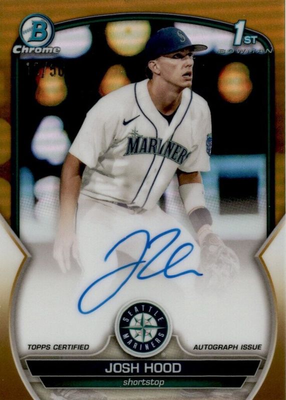 2023 BOWMAN CHROME JOSH HOOD GOLD REFRACTOR 1ST AUTO /50 SEATTLE MARINERS MB