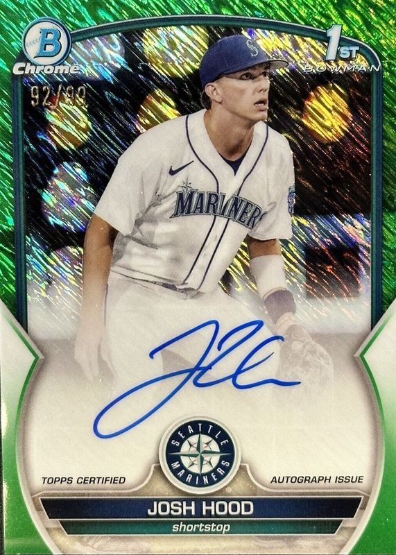 2023 Bowman Chrome Josh Hood 1st Green Shimmer Auto 1/99 Seattle Mariners