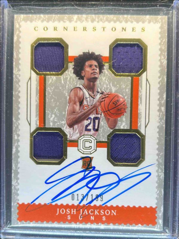 The Josh Jackson 2017 Cornerstones #154 Base /165 Rookie card is 1 of 11 Josh Jackson's card variations in the 2017 Cornerstones set being tracked by Sports Card Investor, including Crystal /89, Quartz /49, Granite /25, Marble /10, and Onyx /1.