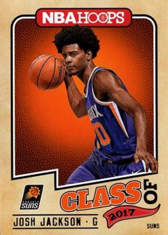 The Josh Jackson 2017 Hoops #4 Class of 2017 Rookie card is 1 of 31 Josh Jackson's card variations in the 2017 Hoops set being tracked by Sports Card Investor, including Base, Premium Factory Set /199, Blue, Faces of the Future, and Great SIGnificance.