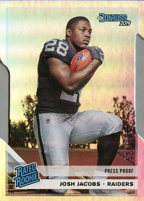 Josh Jacobs 2019 Donruss #308 Press Proof Silver Die-Cut /75 Rookie RAW Price Guide