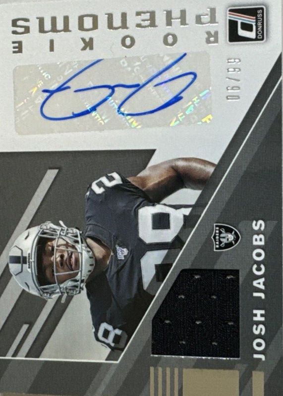 Best Prices Available For Sale of Josh Jacobs 2019 Donruss #RPJ-8 Rookie Phenoms Jersey Autographs /99