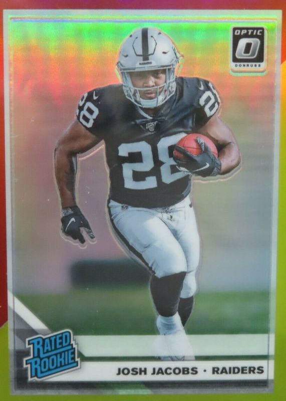 2019 Panini Donruss Optic Rated Rookie Red & Yellow Prizm Josh Jacobs #158 2jg