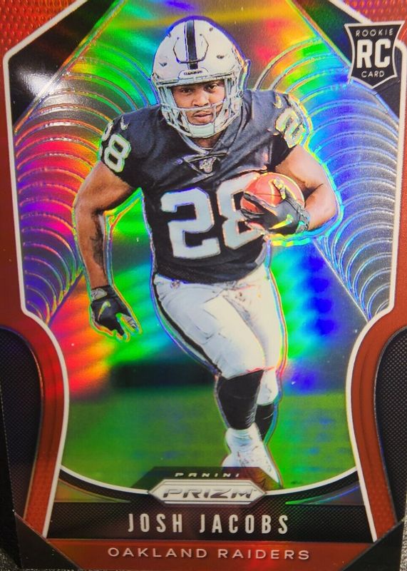 The Josh Jacobs 2019 Prizm #323 Red /(SSP) Rookie card in Raw condition has not changed in price in the last 30 days and was last sold for $43.00 .