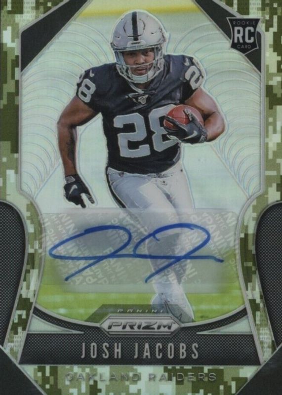 Best Prices Available For Sale of Josh Jacobs 2019 Prizm #323 Rookie Autographs - Camo /25