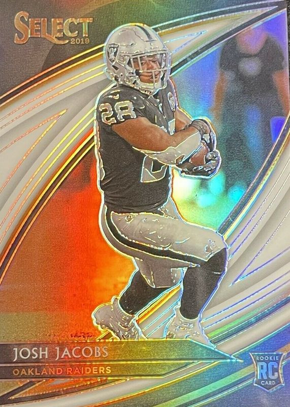 This card is 1 of 53 Josh Jacobs' card variations in the 2019 Select set being tracked by Sports Card Investor, including Concourse, Field Level, Premier Level, Concourse Silver, and Field Level Silver.