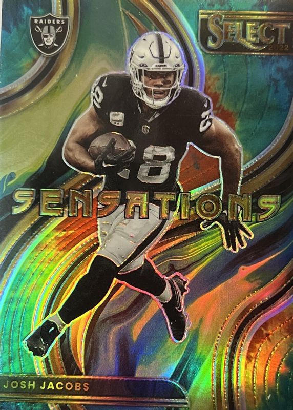 Josh Jacobs 2022 Select #SEN-12 Sensations - Tie-Dye /25 RAW Price Guide