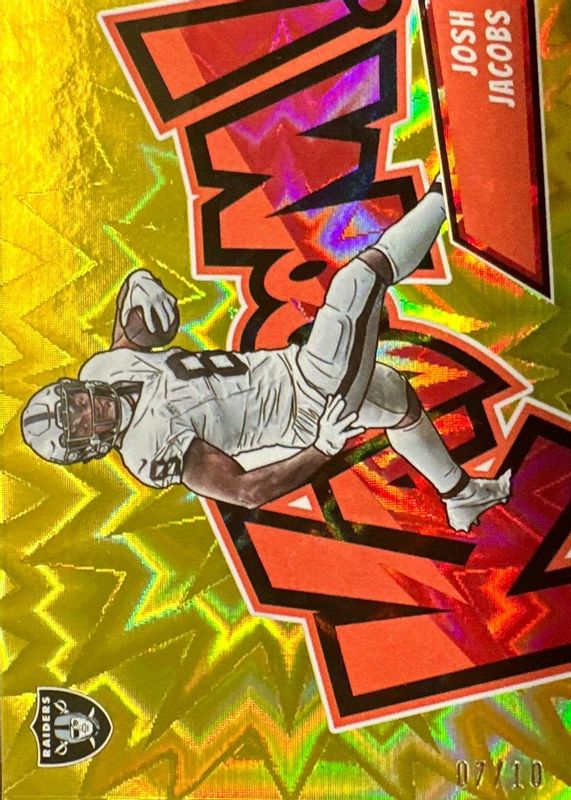 Best Prices Available For Sale of Josh Jacobs 2023 Absolute #10 Kaboom! (Horizontal) - Gold /10