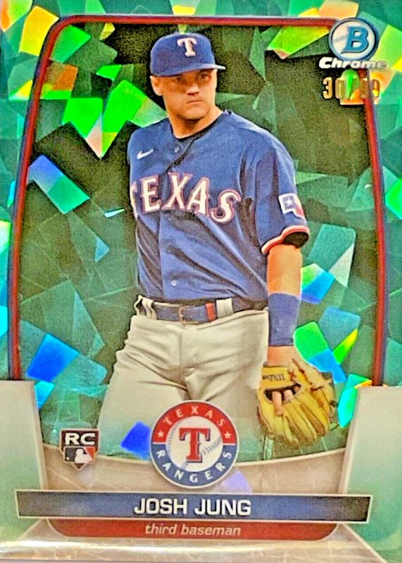 The Josh Jung 2023 Bowman Chrome Sapphire Edition #21 Aqua /99 Rookie card in Raw condition has not changed in price in the last 30 days and was last sold for $8.50 .