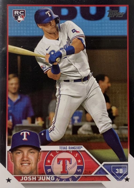 This card is 1 of 21 Josh Jung's card variations in the 2023 Topps set being tracked by Sports Card Investor, including Base, Gold Foil, Rainbow Foil, Royal Blue, and Gold /2023.