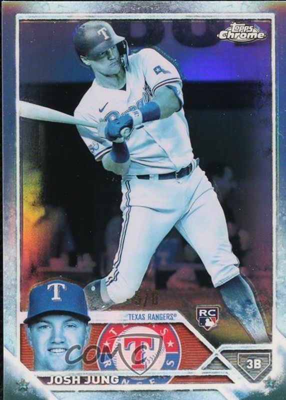 This card is 1 of 67 Josh Jung's card variations in the 2023 Topps Chrome set being tracked by Sports Card Investor, including Base, Negative Refractor, Pink Refractor, Prism Refractor, and Refractor.