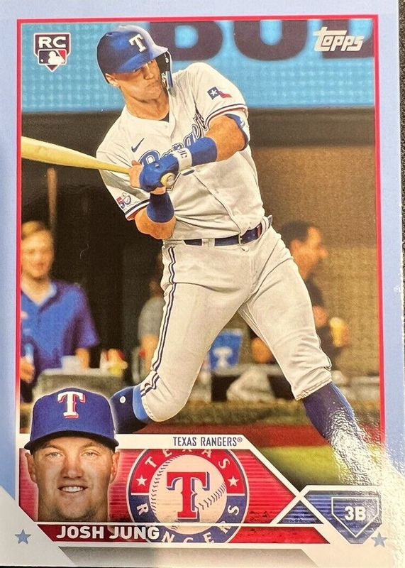 This card is 1 of 21 Josh Jung's card variations in the 2023 Topps set being tracked by Sports Card Investor, including Base, Gold Foil, Rainbow Foil, Royal Blue, and Gold /2023.