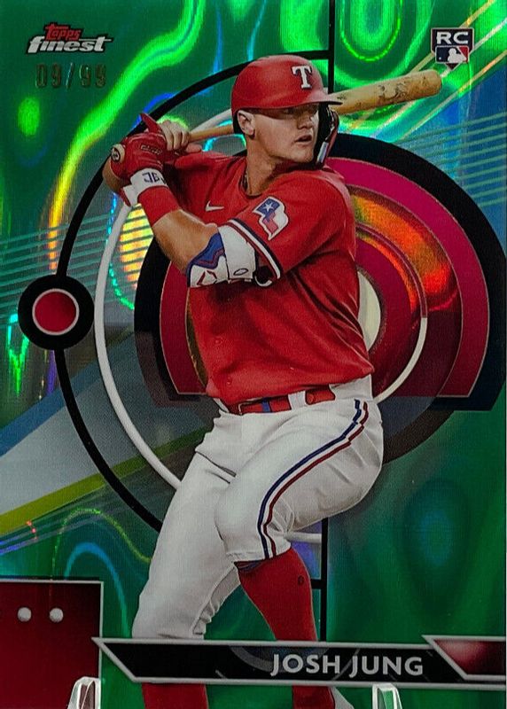 JOSH JUNG /99 FINEST ROOKIE GREEN LAVA REFRACTOR RC RANGERS #75 2023 23 TOPPS