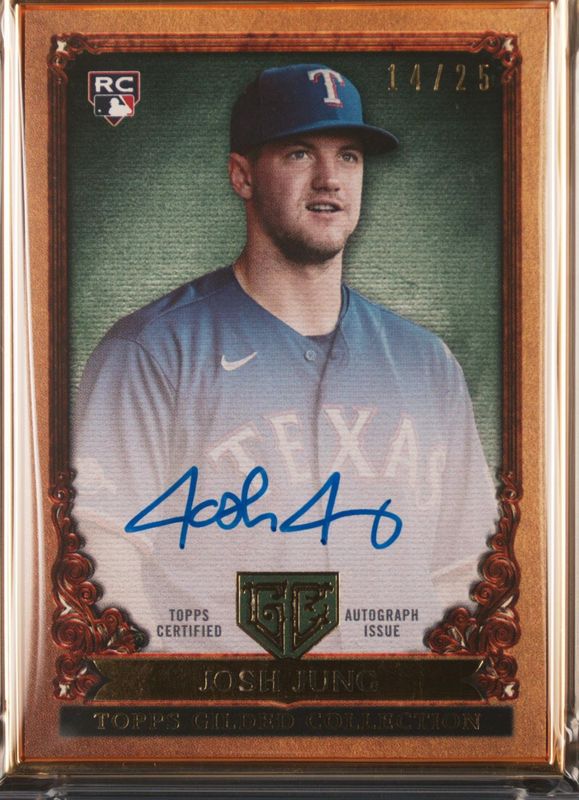 Josh Jung 2023 Topps Gilded Collection #GOG-JJ Gallery of Gold Autographs - Emerald /25 Rookie RAW
